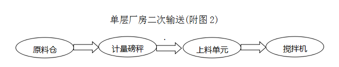 多層廠房采用一次輸送方式,即物料從原料倉輸送至計量磅秤后靠自重垂直落入攪拌機內;單層廠房采用二次輸送方式,即物料從原料倉輸送至計量磅秤后,再從計量磅秤輸送至上料單元后靠自重垂直落入攪拌機內。若客戶的生產工藝流程有其他特殊要求,我公司可以根據客戶實際需求做出相應調整。